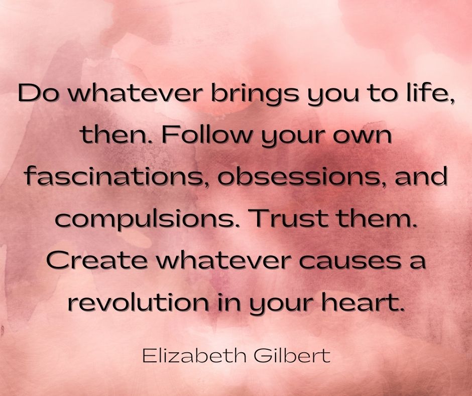 Do whatever brings you to life, then. Follow your own fascinations, obsessions, and compulsions. Trust them. Create whatever causes a revolution in your heart.
